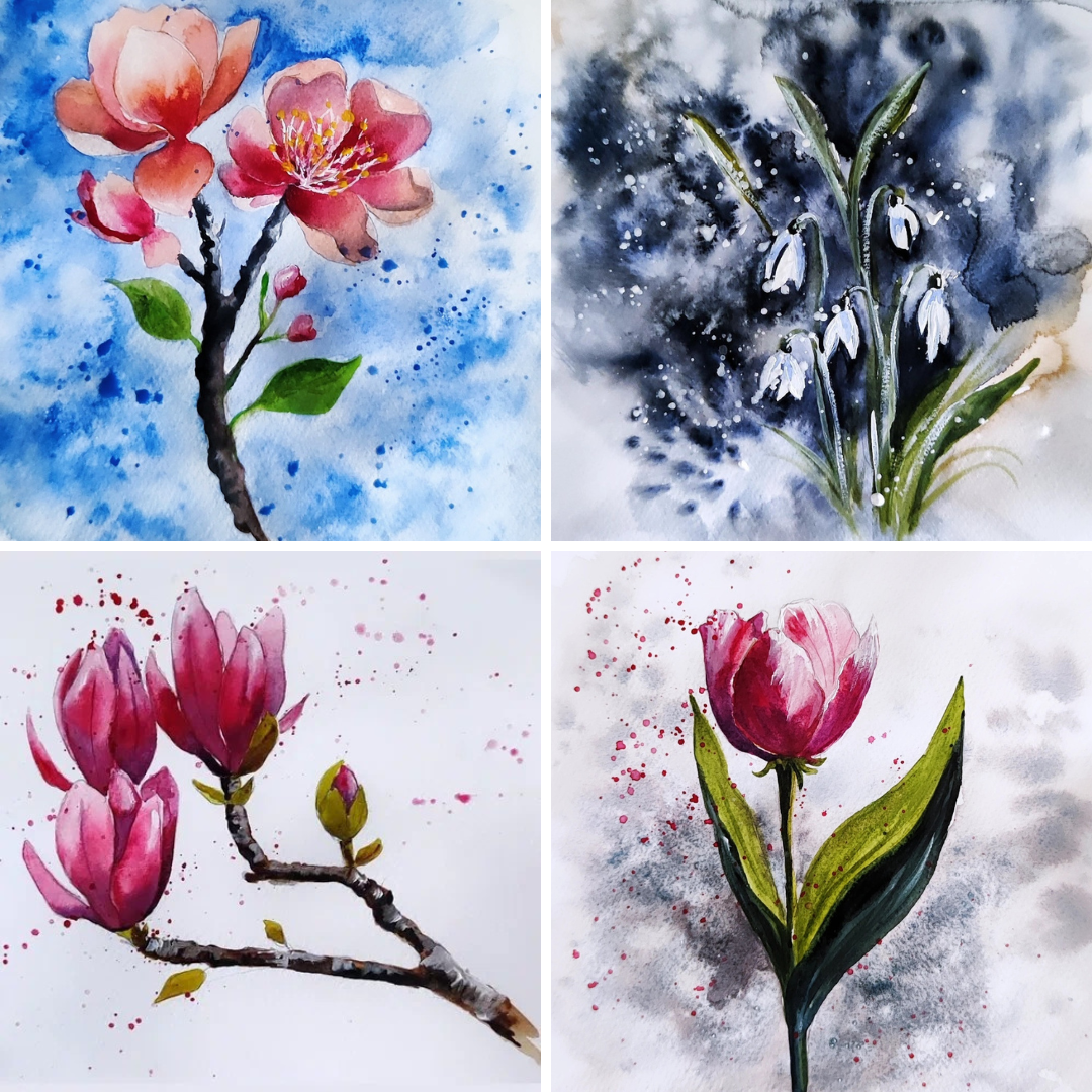 Марафон пройдет с 22 по 30 апреля. Вы создадите четыре работы в акварельной технике. Вас ждут четыре мастер-класса, запись будет!